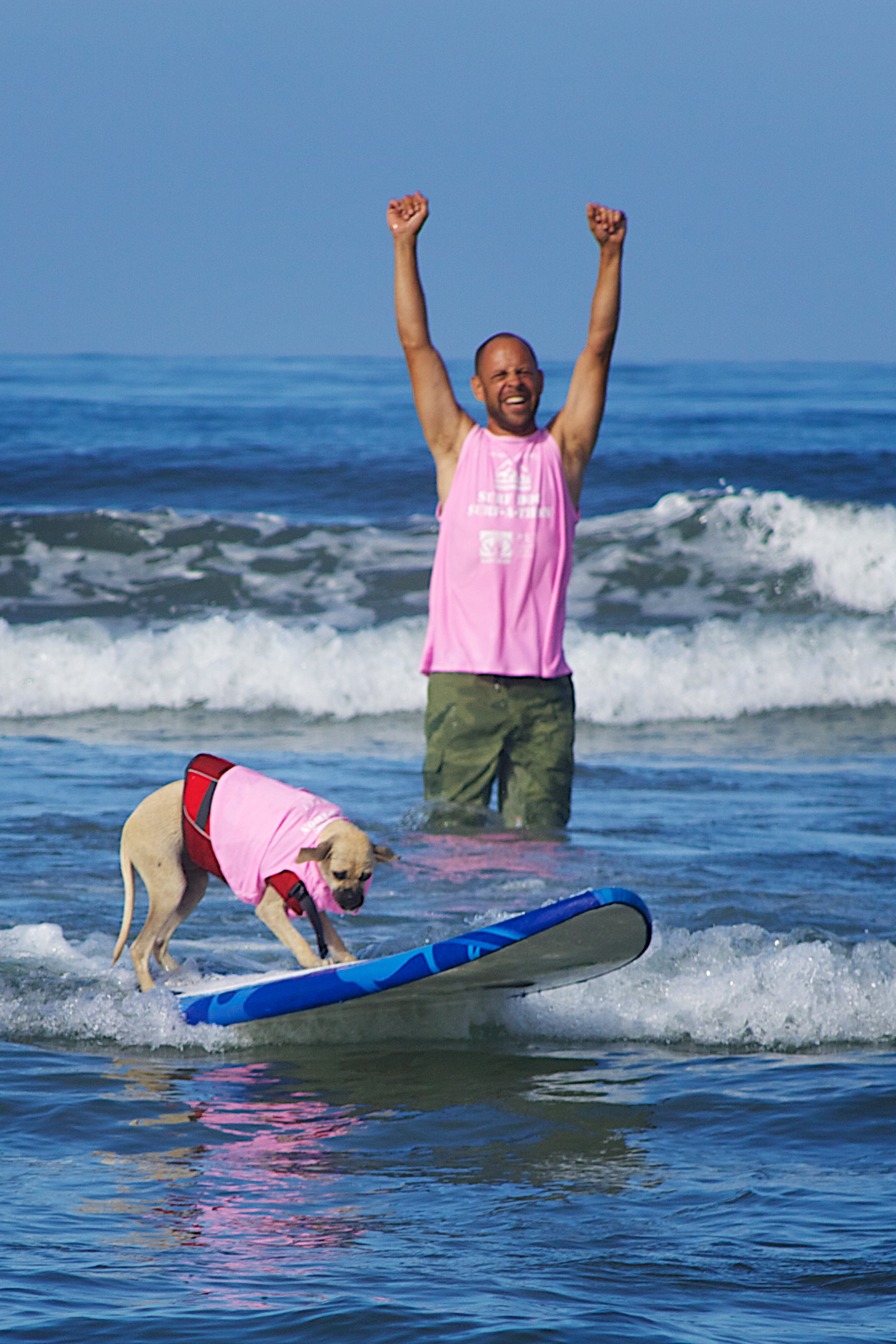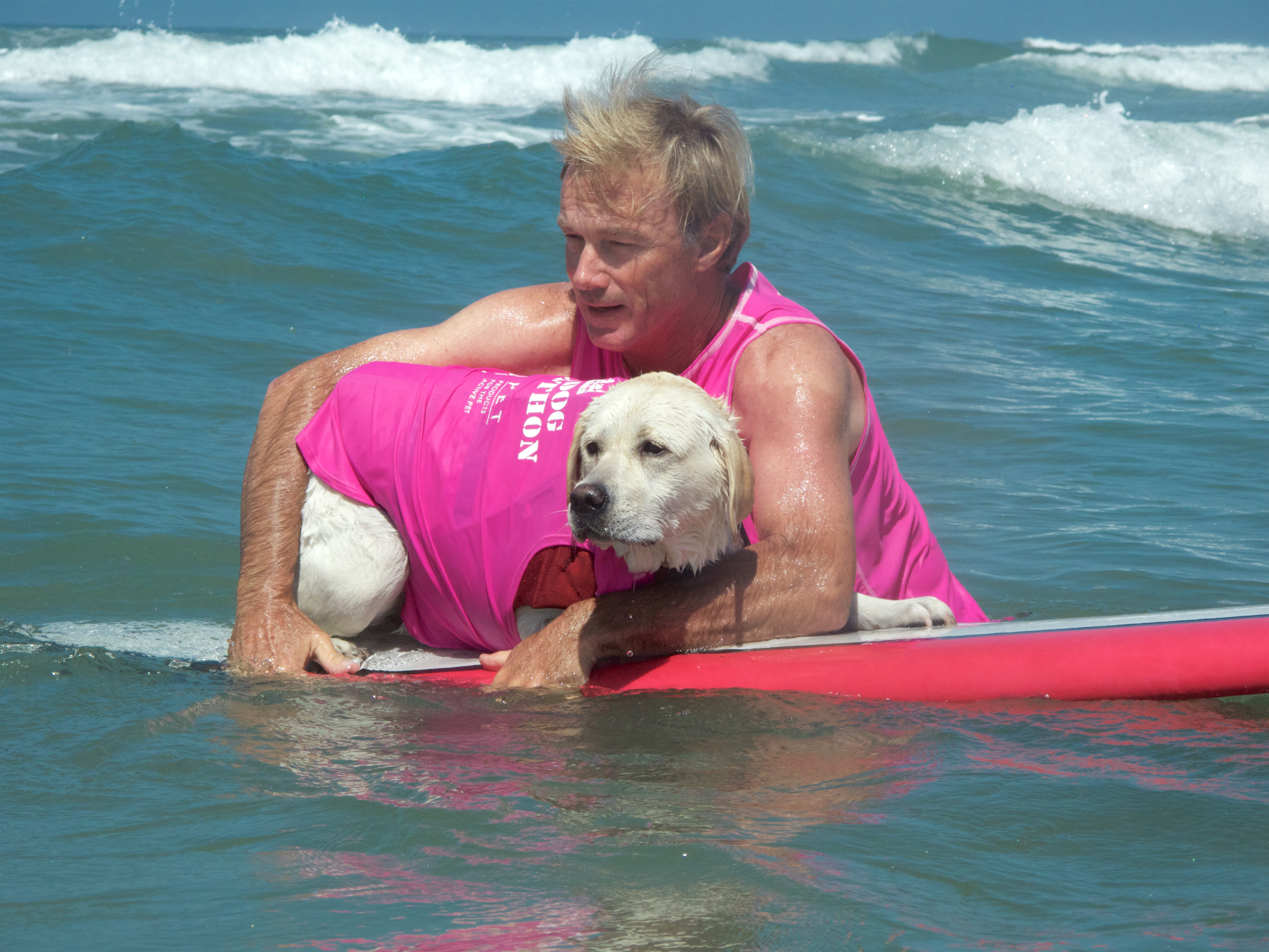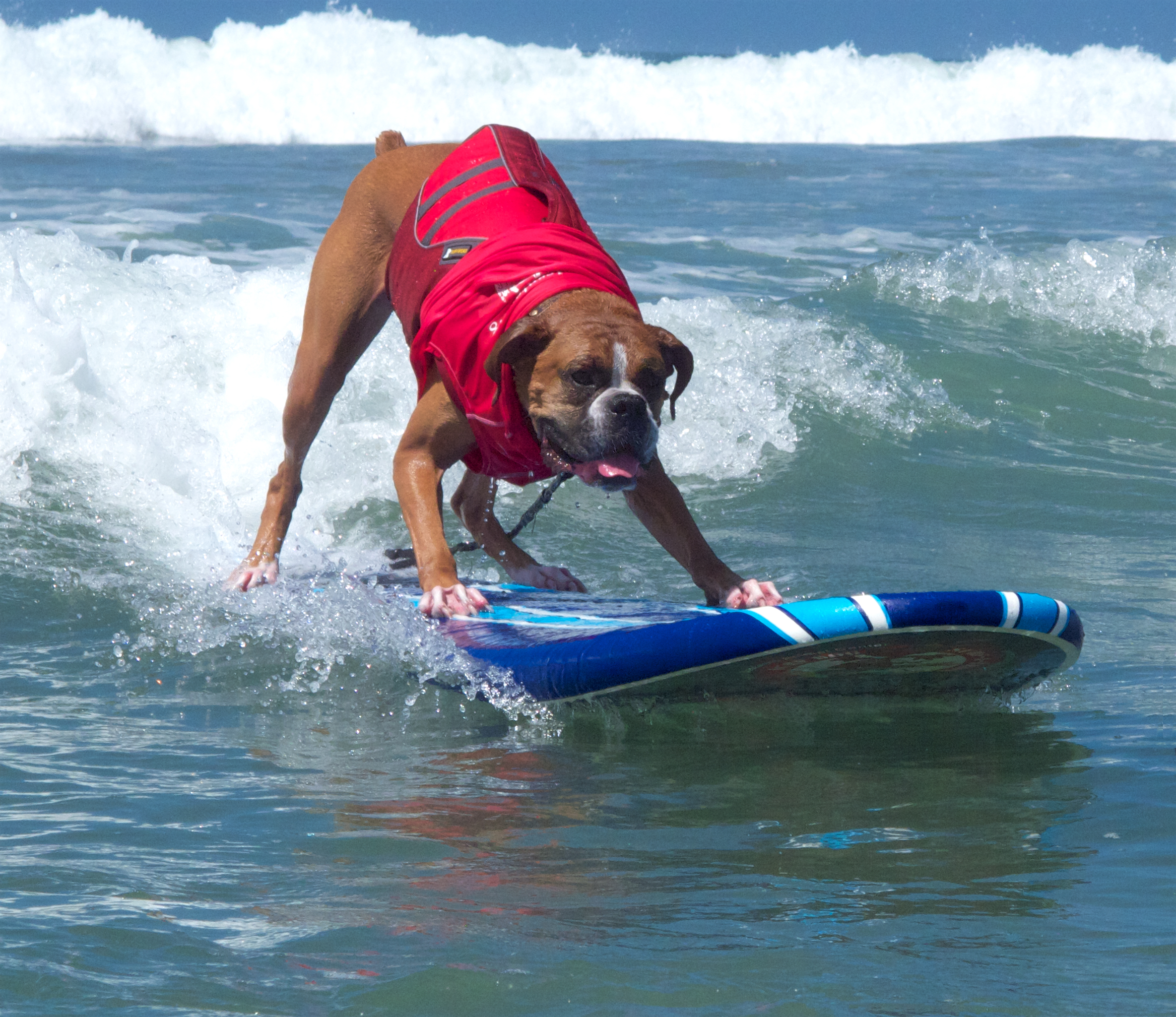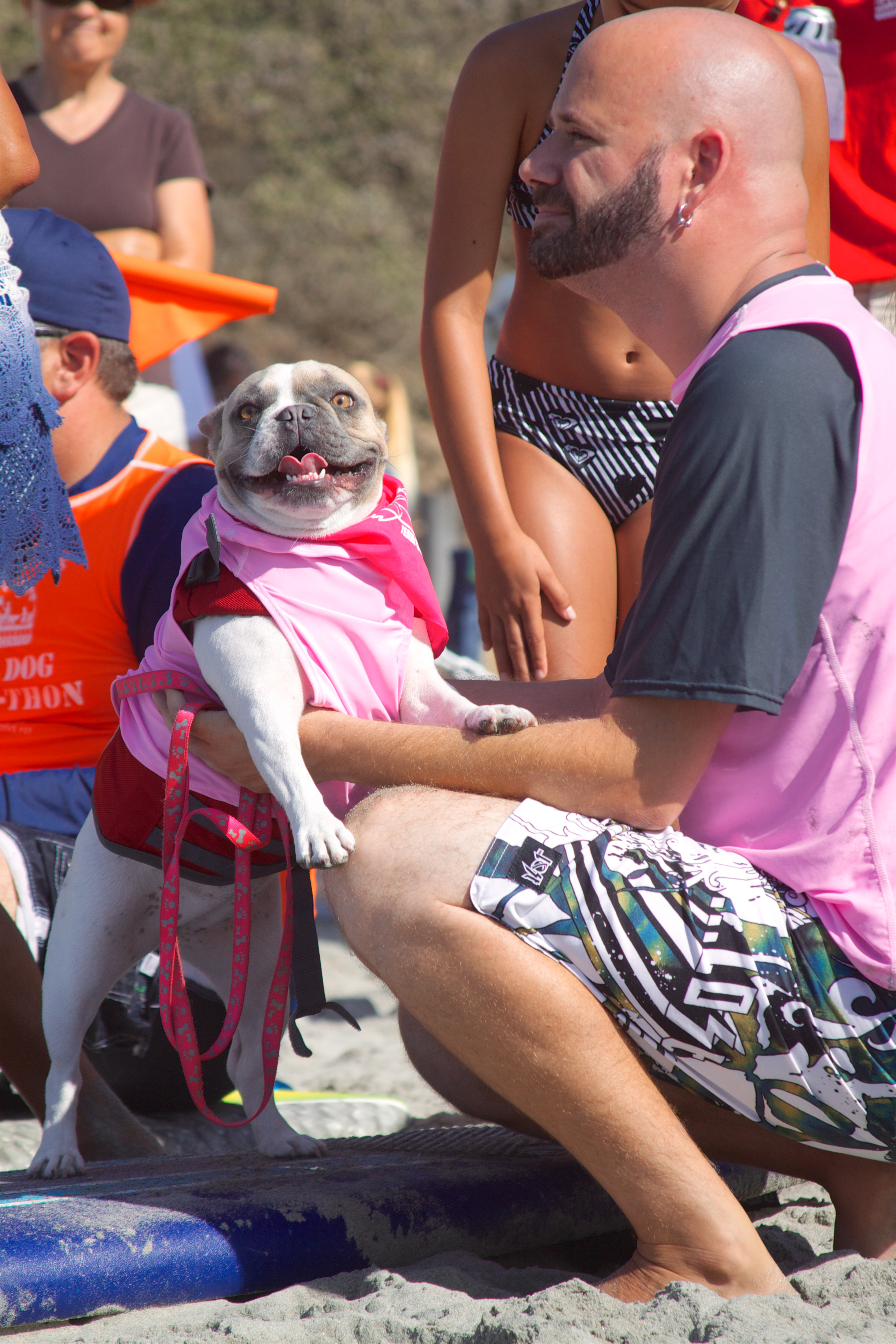 Del Mar dog beach once again set the stage for the Helen Woodward Surf-a-thon, a fund-raiser for the animal clinic. The competitors all have support teams and draw a huge crowd of spectators, 2 and 4 legged, to cheer them on as they take to the waves to show their skills whether they are new surfers or long time pros.